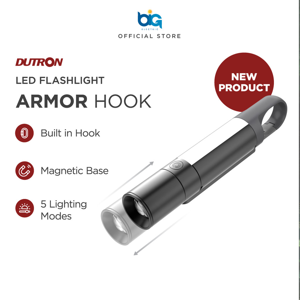 Dutron Armor Hook Senter Led Alumunium 5 Mode Cahaya 20 Watt - Senter Dengan Magnet Dan Baterai Rechargeable Lithium 220