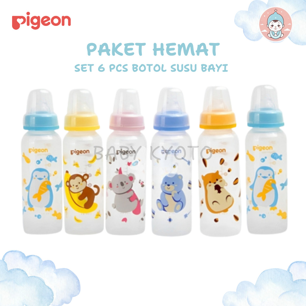BK 6 Pcs Botol Dot Susu Bayi Pigeon Slim Neck Peristaltic Ulir Nipple Newborn Baby Bottle PP BPA Fre