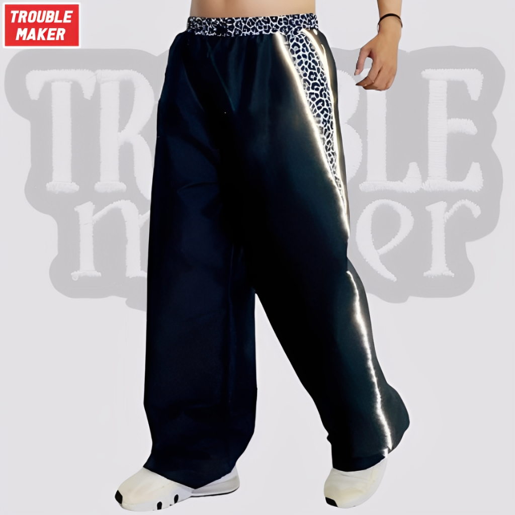 Celana Vintag Panjang Pria Reflektif Leopard Buggypants Gaya Futuristik-Retro Celana Parasut Menyala Motif Leopard