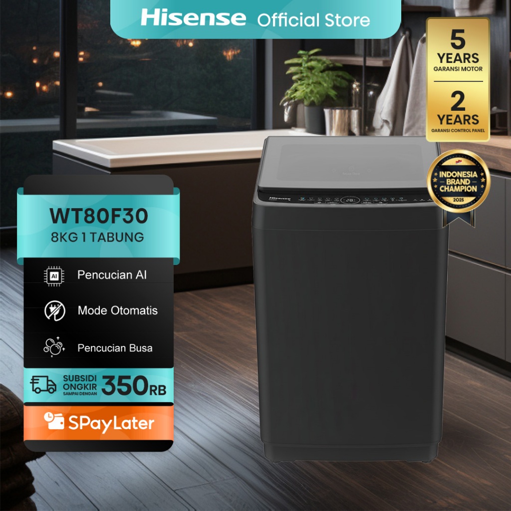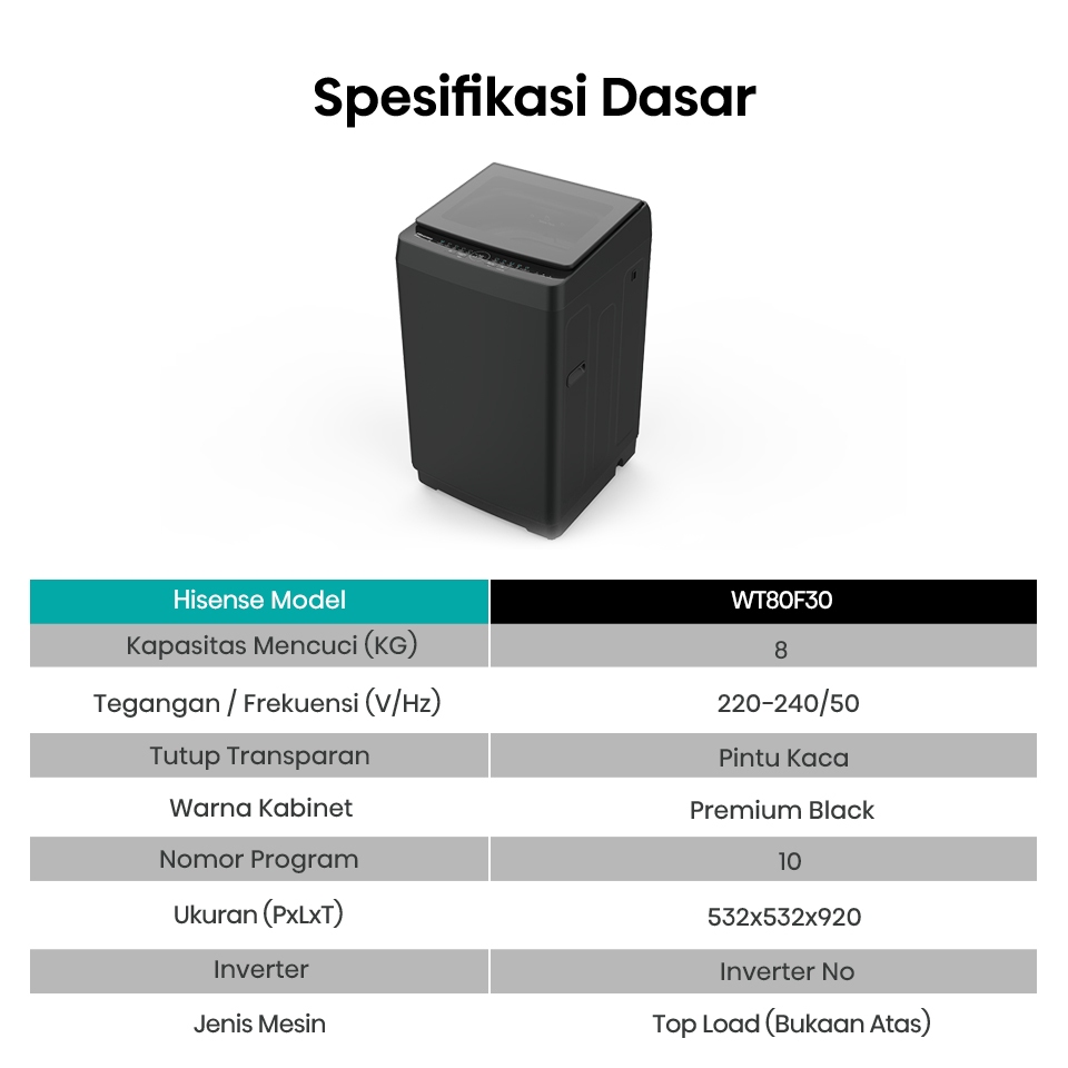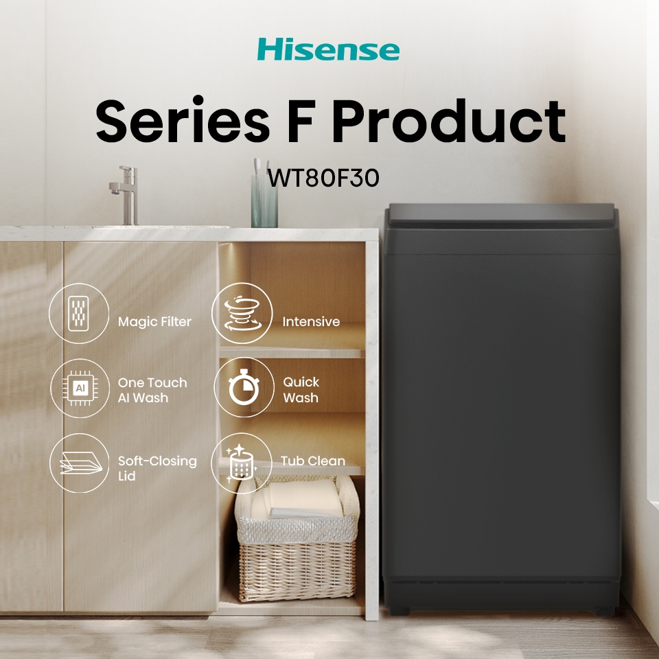 Hisense Mesin Cuci WT80F30 Top Loading Kapasitas 8KG 1 Tabung Bukaan Atas One Touch