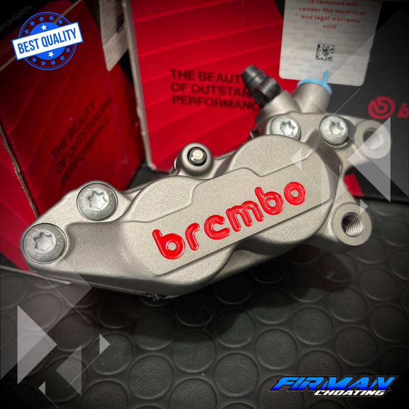 KALIPER BREMBO 4 PISTON 1 PIN GREY KANAN UNIVERSAL ORIGINAL RED LOGO