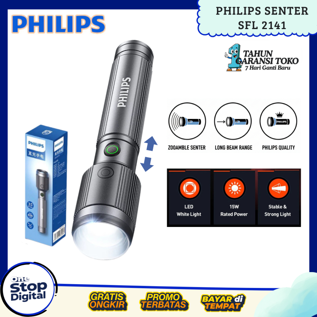 Philips Sfl2141 Senter Philips Zoomable Anti Slip / Senter Rechargeable & Adjustable Focus Garansi