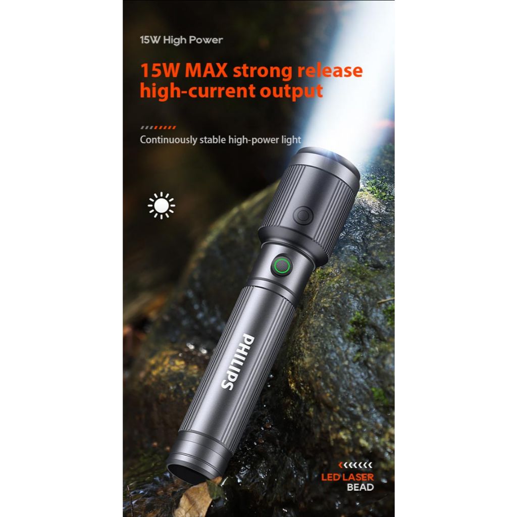 Philips - Flashlight/Senter Rechargeable & Adjustable Focus Flashlight Sfl 2141/56 Dark Grey 10W&650Lm Senter Multifungs