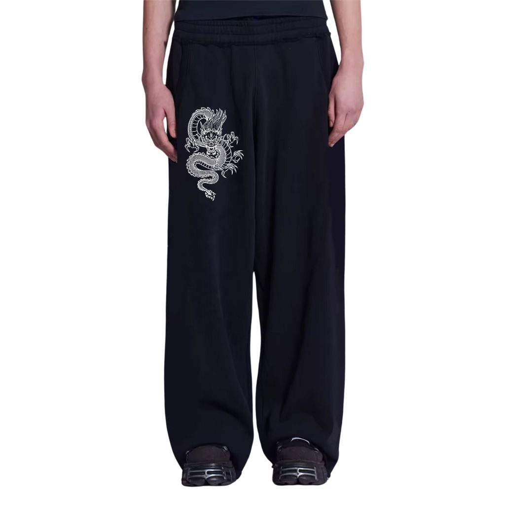 Strees Celana Panjang Sweatpants Baggy Big Dragon Berbahan Kain Fleece Lembut Adem Size L-Xxl Pria & Wanita