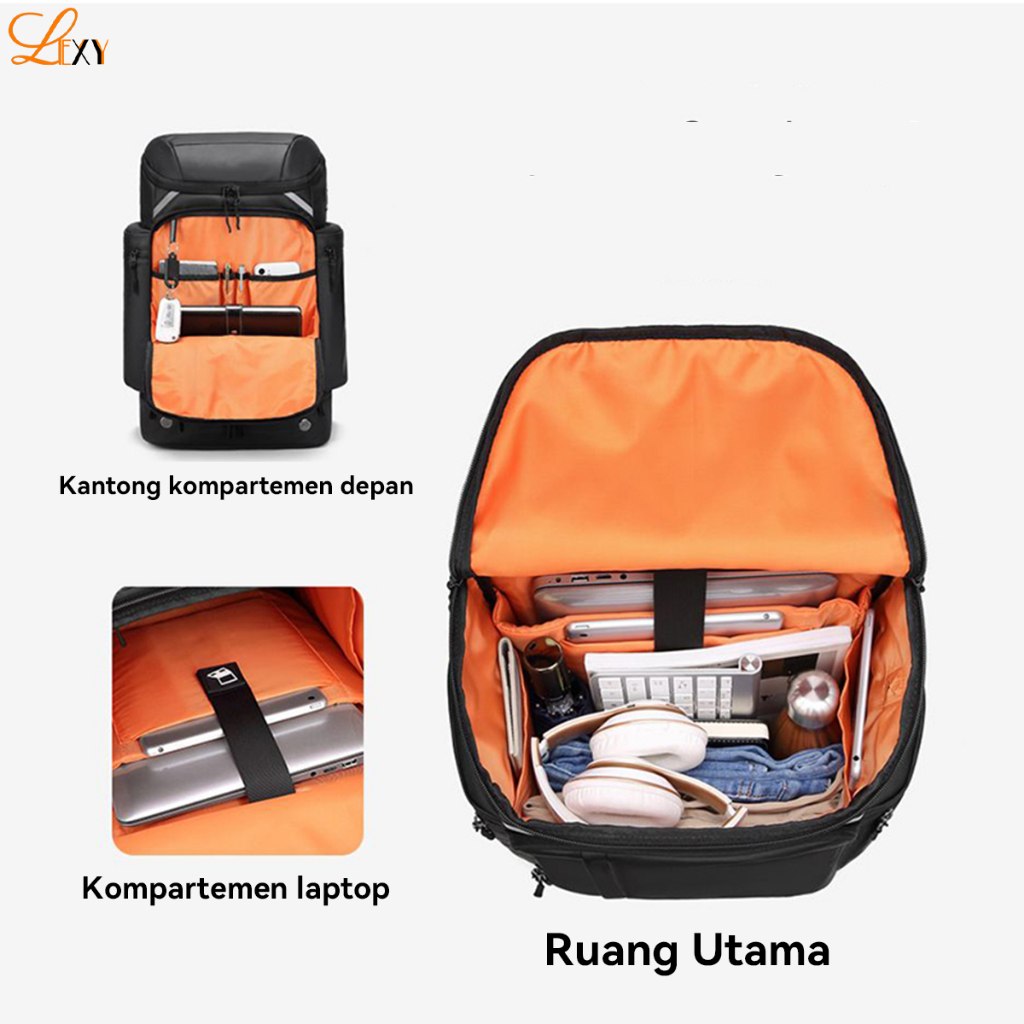 Lexy Tas Traveling Pria Kapasitas Besar Ransel Multifungsi Tahan Air Dengan Kompartemen Sepatu 45L