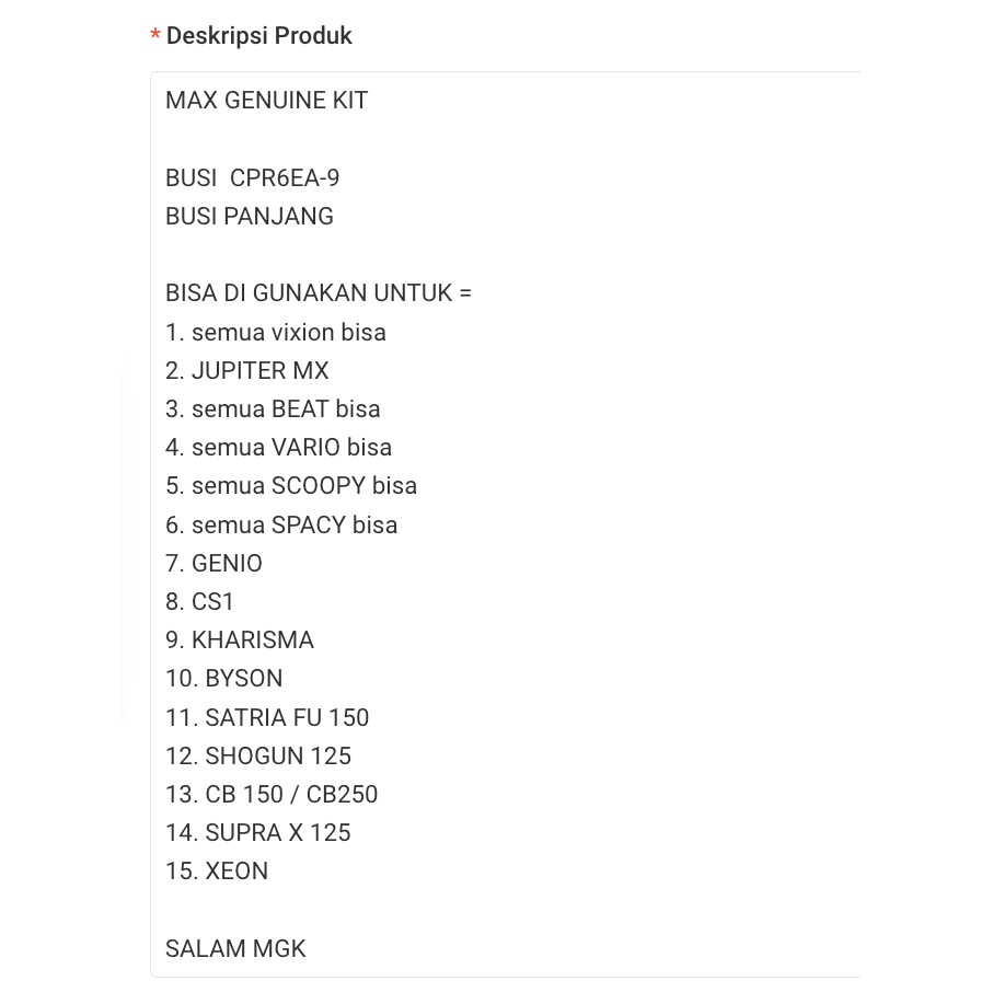 BUSI CPR6EA-9 BEAT VARIO SCOOPY SPACY JUPITER MX GENIO KHARISMA DLL