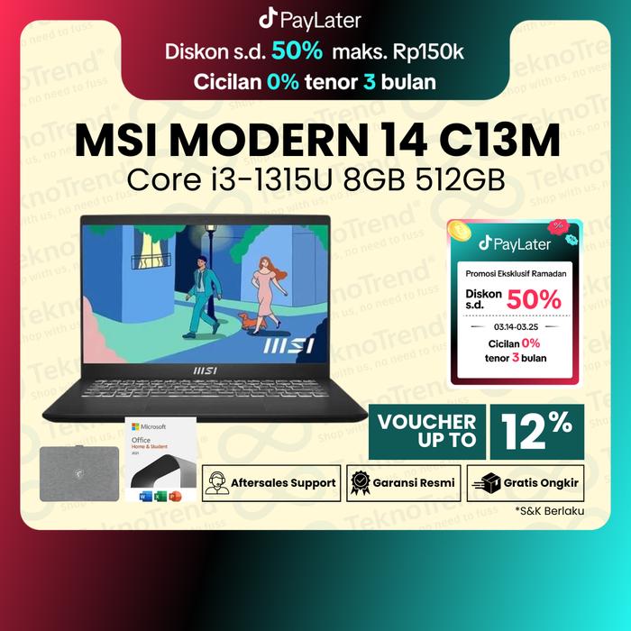 LAPTOP MSI MODERN 14 C13M CORE I3-1315U 8GB 512GB SSD 14″ FHD IPS - BLACK, NO BUNDLE