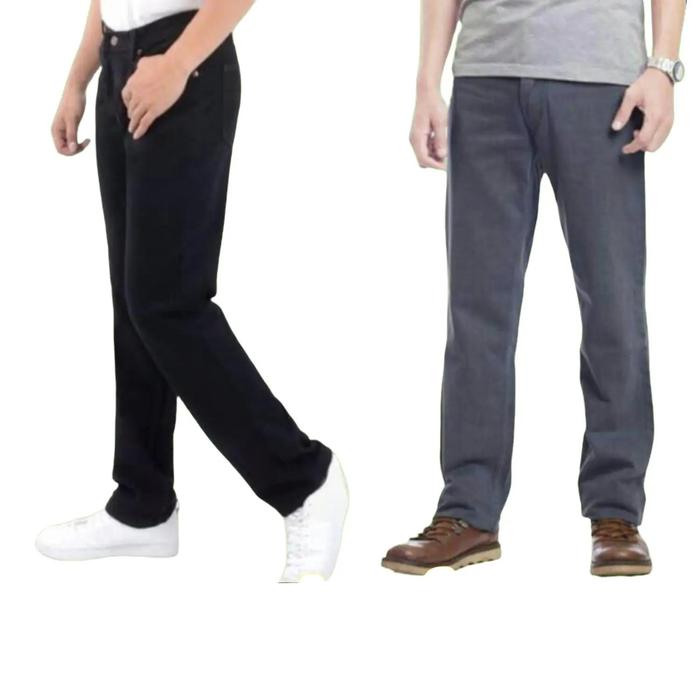 Suryamain Olshop Celana Panjang Jeans Reguler Softjeans Pria Standart Melar Bahan Halus Tebal Size 27-38 Warna Hitam Ice