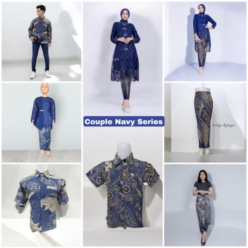 Stelan Couple Batik Keluarga Warna Navy Kemeja Dewasa Anak Kebaya Brokat Modern Kekinian Pesta Wisuda Lamaran Kondangan Ibu Hajat Besan