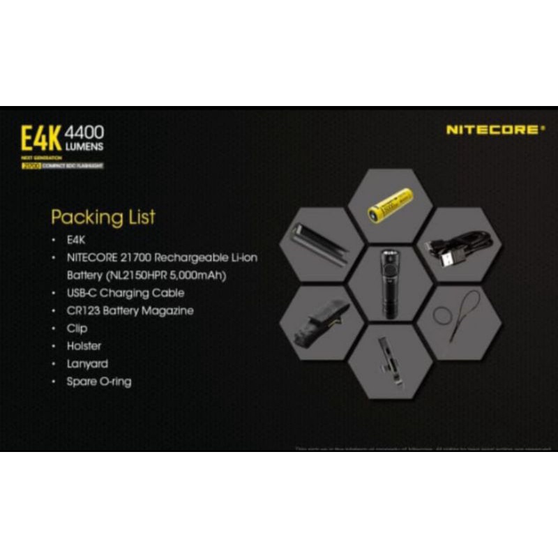 Senter 4400 Lumens Nitecore E4K Next Generation 21700 Compact Edc