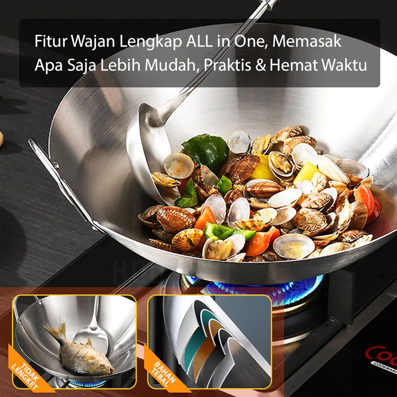 Nyaman Wajan Stainless Steel 555 Besar Katel Anti Lengket Tebal Kuali Premium dengan Pegangan Kuali