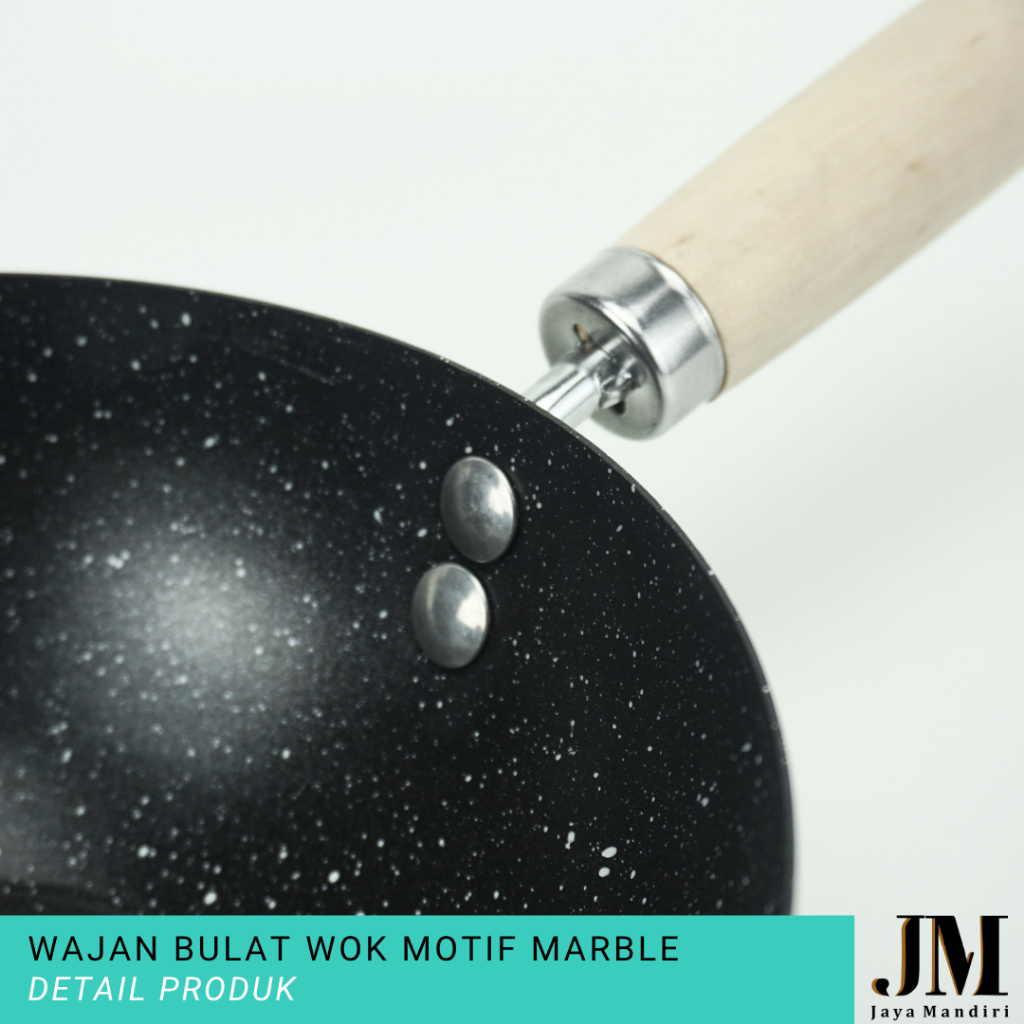 Wajan Wok Granite Anti Lengket 20 dan 24 cm Teflon Gagang Kayu Frypan Marble Non Stick Pan AA217