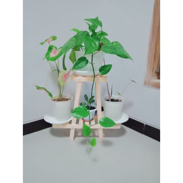 Rak bunga wooden / standing pot / standing flower / tempat bunga mini malis berat 1 kg (RBL)