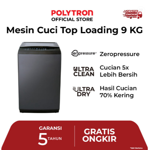 POLYTRON Mesin Cuci 1 Tabung 8 Kg PAW 8029TY I 9 Kg PAW 9029TY