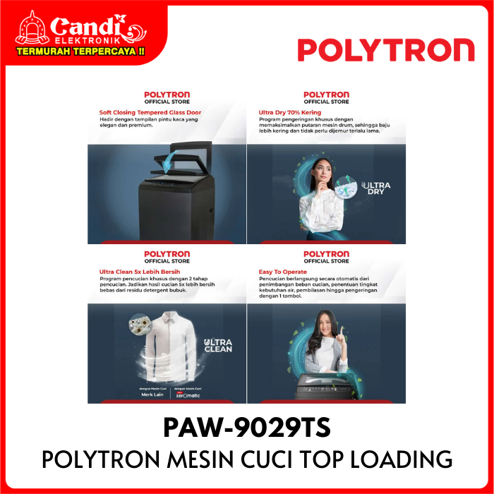 POLYTRON MESIN CUCI PAW9029TS 9 KG T0P LOADING ZEROMATIC LAGUNA 1 TABUNG PAW9029TS PAW 9029TS
