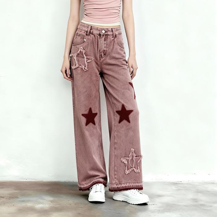 Celana Jeans Wanita Baggy Pink Bintang Fuji Inspired Look 6169 – Mein Premium - Merah Jambu, S