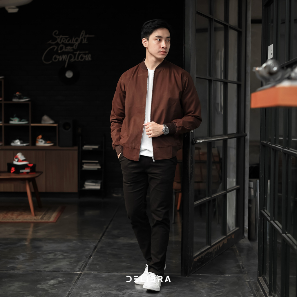 Delibra Jaket Bomber Canvas Pria Brown