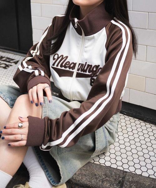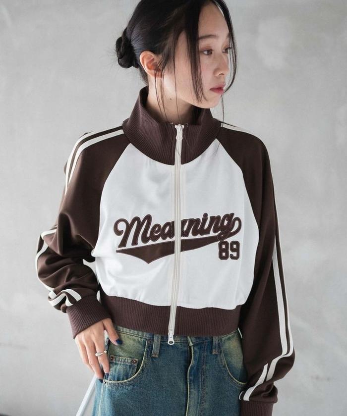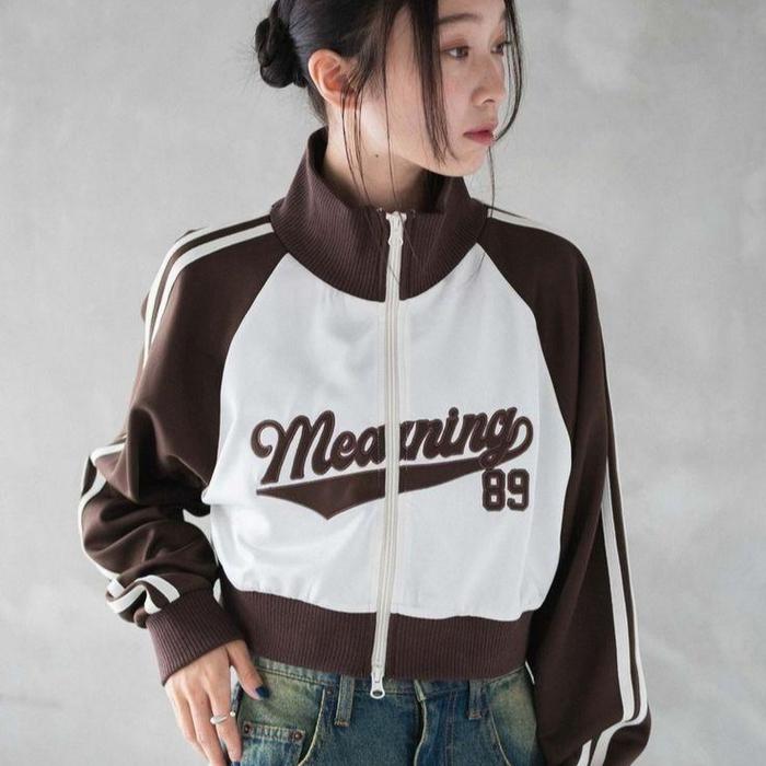 Meaning 89 Jacket Crop Varsity Wanita - Jaket Zipper Crop Top Wanita Korean Style Kekinian - White Coffe
