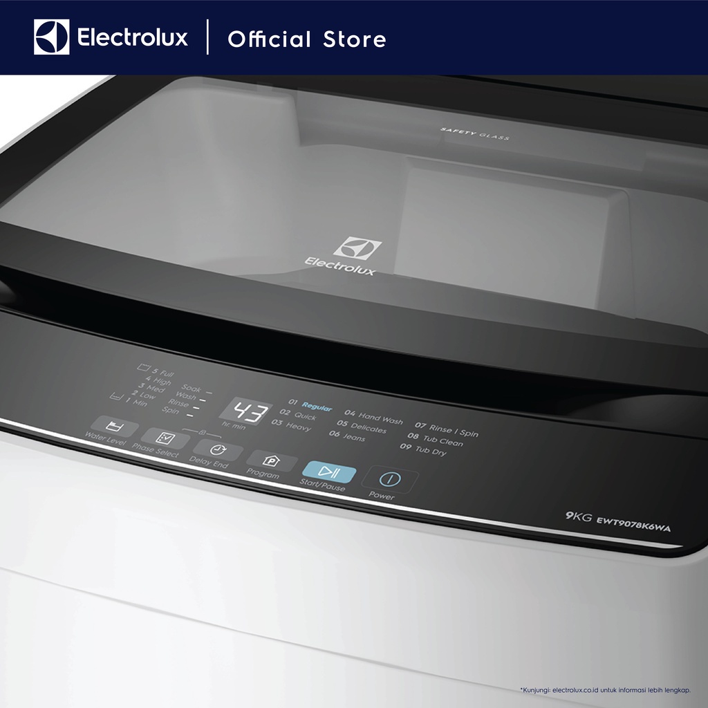 Electrolux Mesin Cuci Top Loading EWT9078K6WA 9kg Tub Clean Garansi 1 Tahun 10 Tahun Motor EWT9078 K6WA EWT 9078 K6WA