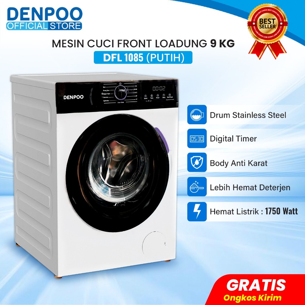 Denpoo Mesin Cuci Front Loading 1 Tabung DFL1085 9KG