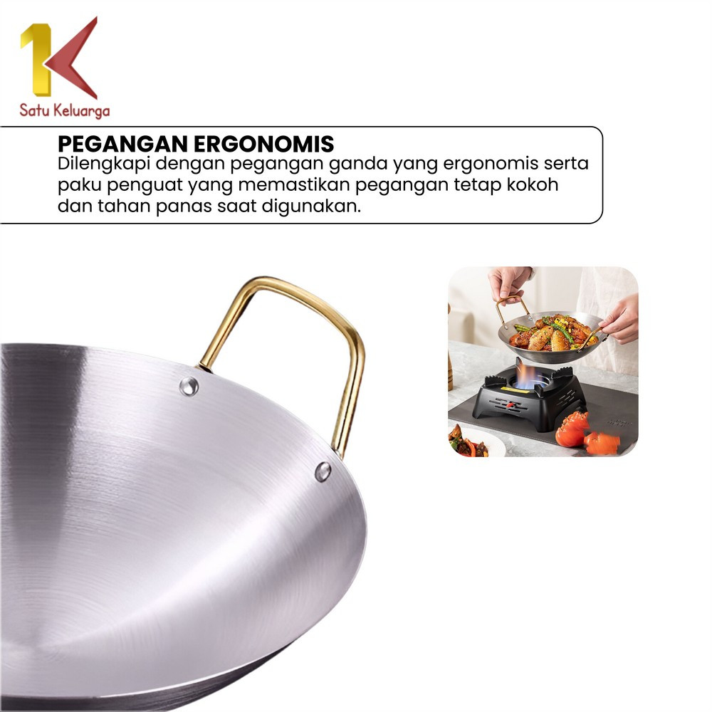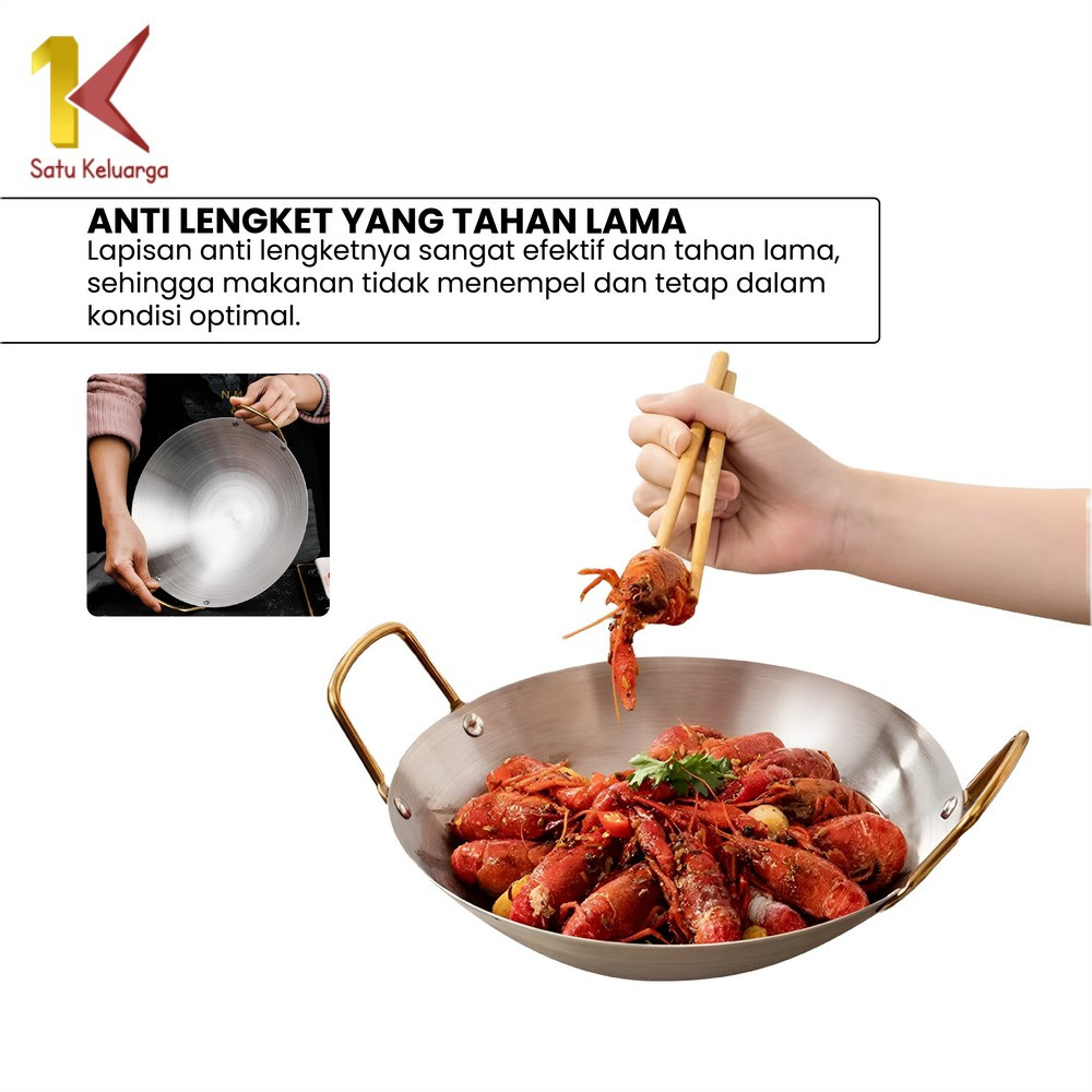 Satu Keluarga Wajan Stainless Steel C1212 Tebal Kuat Gagang G-old Anti Lengket Serbaguna Premium Quality