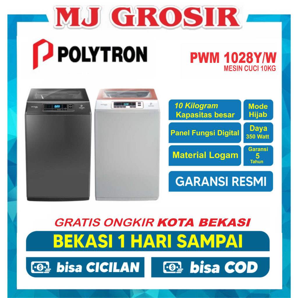 MESIN CUCI 1 TABUNG POLYTRON PAW 1028 EWT 9078 T0P LOADING 10 KG 9 KG ZEROMATIC