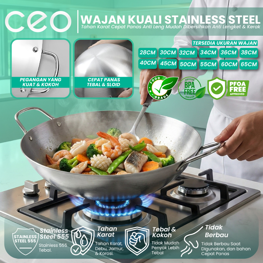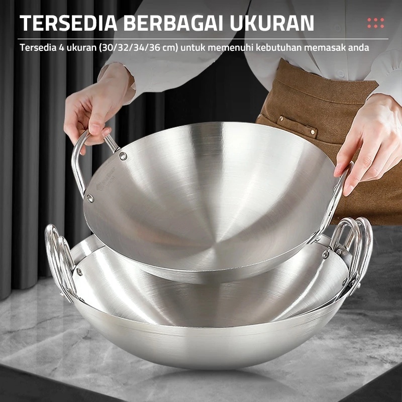 CEO Wajan Kuali Stainless Steel Anti Lengket Penggorengan Tebal Premium Katel Masak Dengan Pegangan