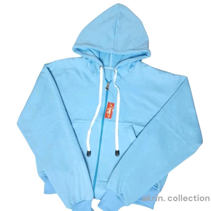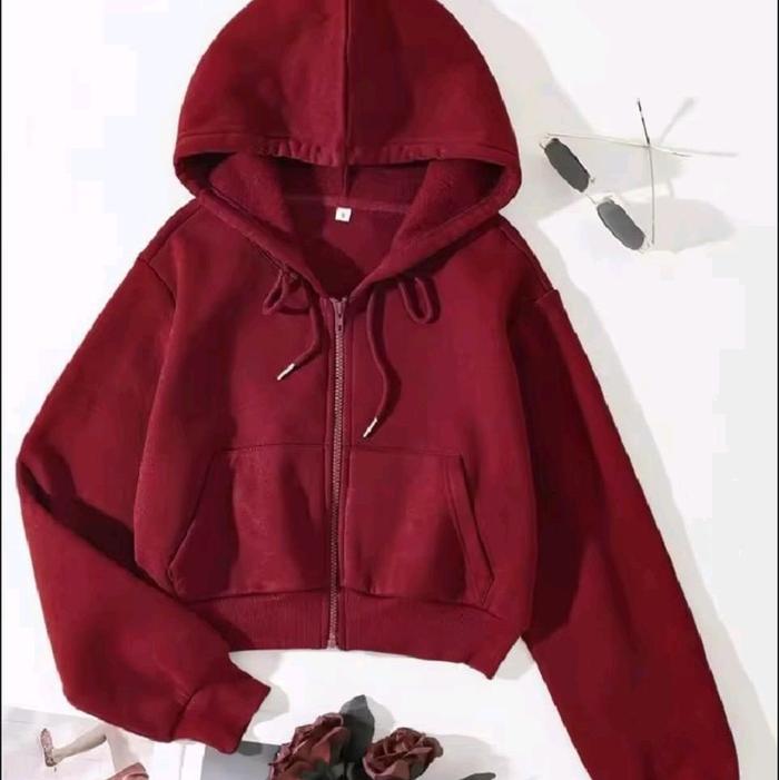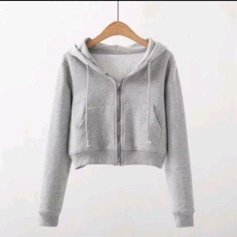 Sweater Hoodie Crop Top Zipper Lengan Panjang Wanita Premium Bahan Tebal - Putih, M