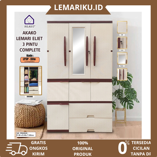 Lemari Pakaian Plastik Akako Lemari Pakaian Jumbo Elite 3 Pintu Gantung Kaca Cermin