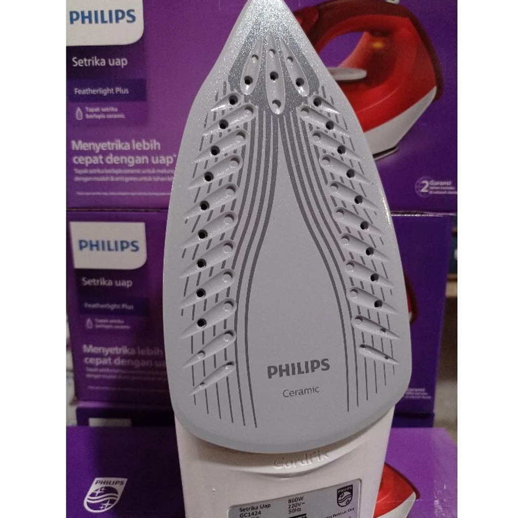 Philips Setrika Uap Gc1424/45 Merah - Setrika Uap Optimal, Tapak Non-Stick