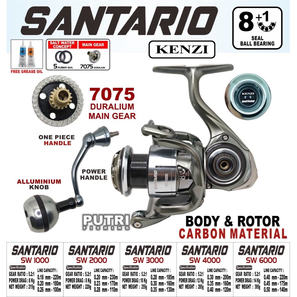 REEL KENZI SANTARIO SW 1000 2000 3000 4000 6000 FULL CARBON BODY GEAR DURALIUM 7075 8+1 BB Spinning