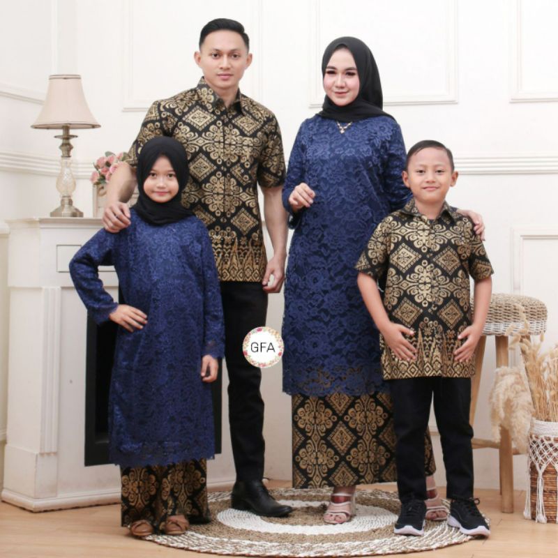 MALAYA FAMILY, SET KELUARGA TUNIK BROKAT KEBAYA HEM