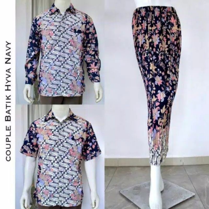 KEBAYA MODERN/COUPLE BATIK NUSANTARA/COUPLE BATIK KELUARGA/COUPLE BATiK BUGENVILLE NAVY