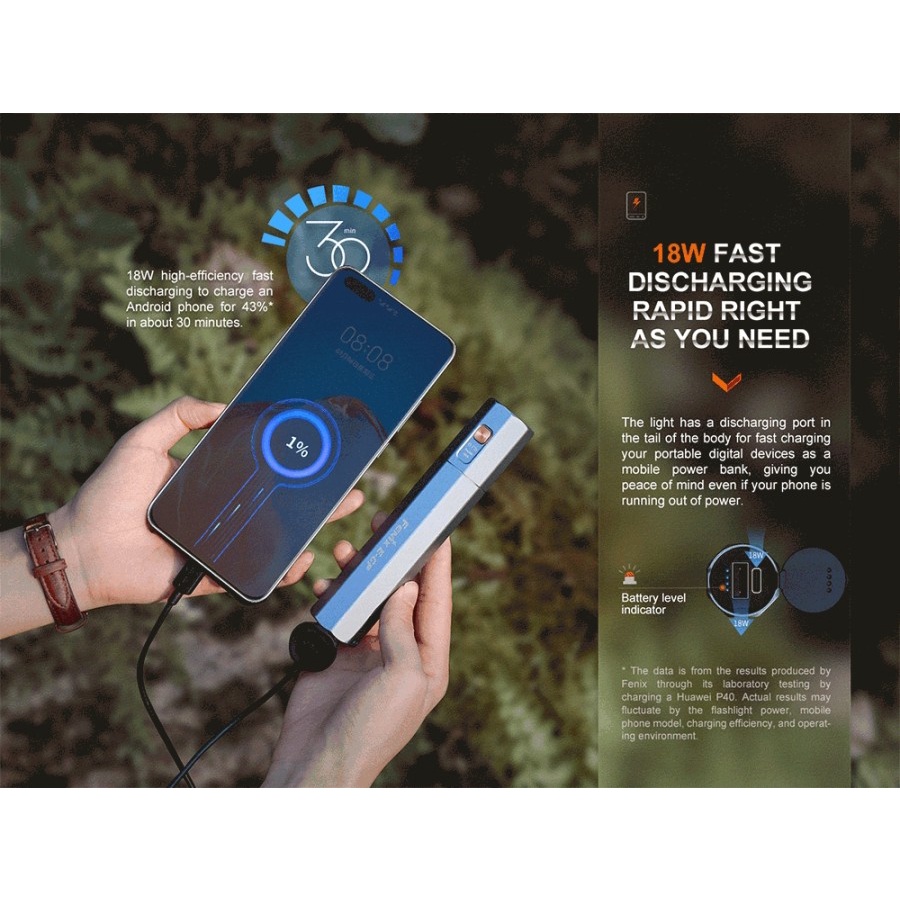 Fenix E-Cp Morandi Blue Powerbank Rechargeable Flashlight Senter Led