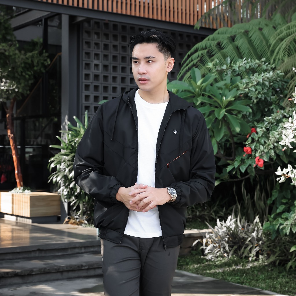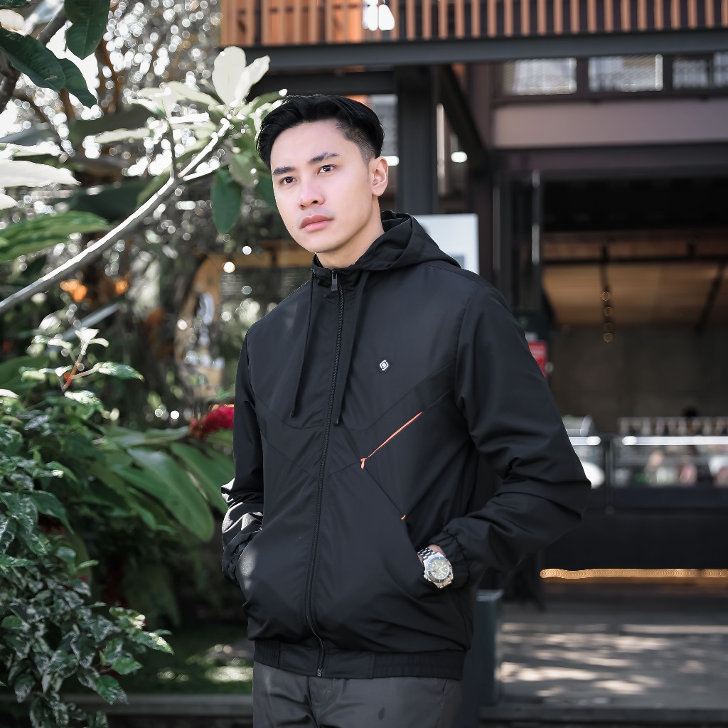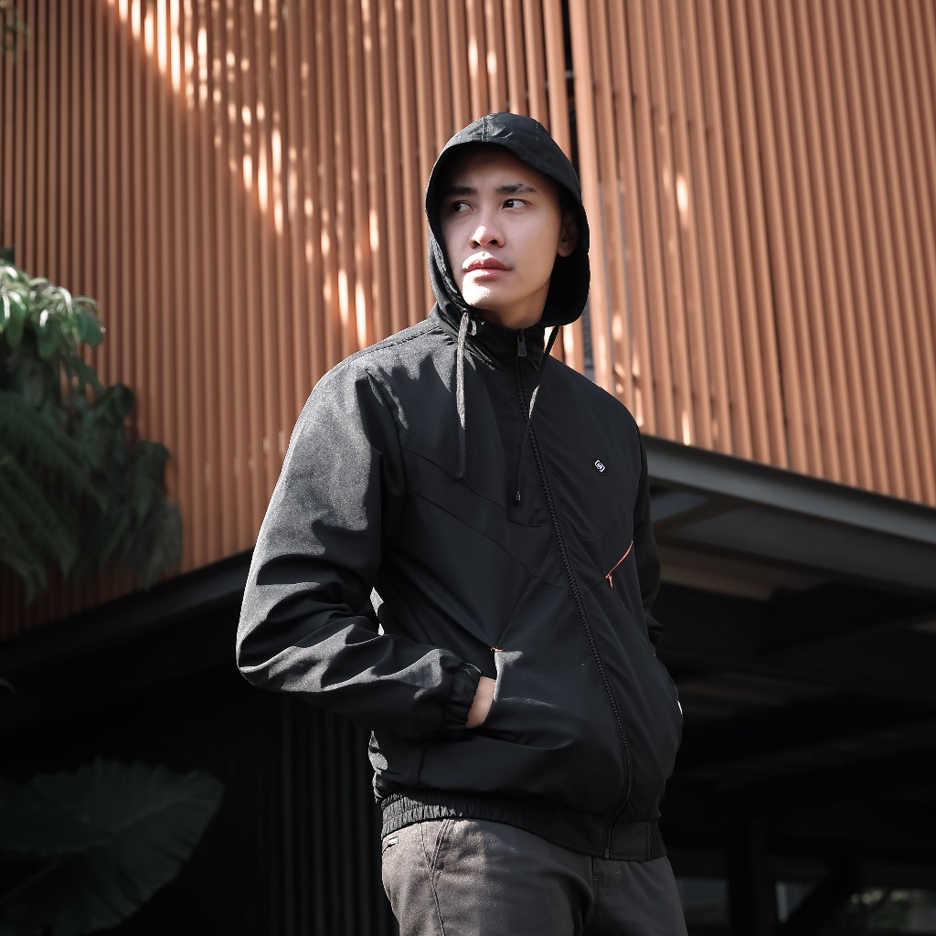 Jaket Pria Bomber Windbreaker Black Lazeo