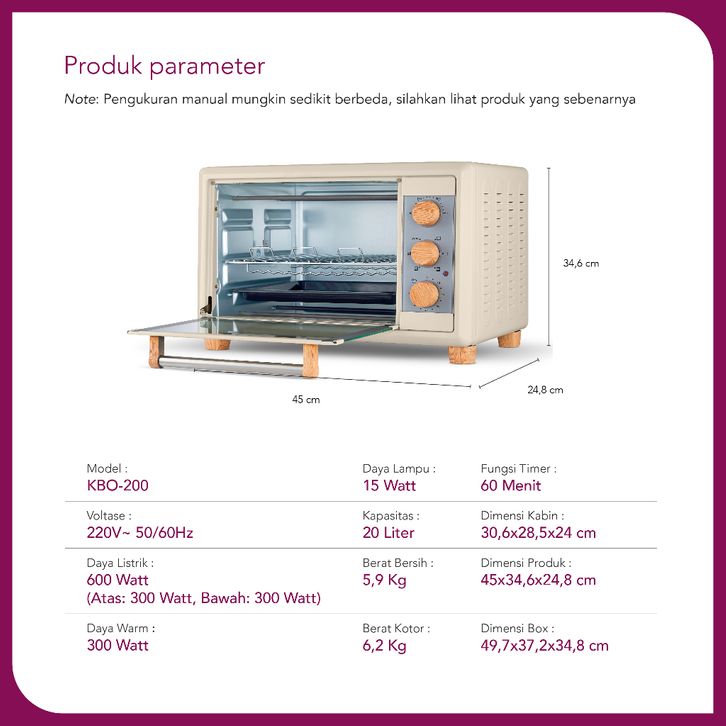 [ Tanpa Dp ] Oven Listrik Kirin 20 Liter KBO-200 Low Watt Berkualitas Mito Advance Sekai Mecoo Best Seller Pemanggang