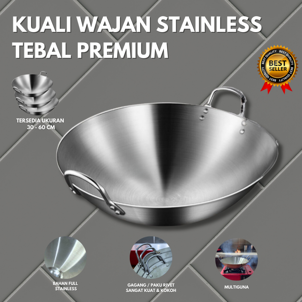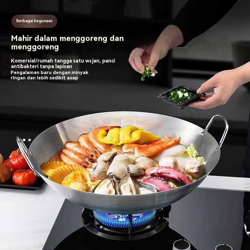 “”Wajan baja wajan penggorengan tebal semua stainless steel/wajan anti lengket stainless steel 304 asli/wajan cekung/waj