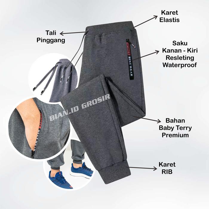 Promo Lebih Hemat Celana Joger Panjang 100Rb Dapat 4 Pcs Resleting Waterproof Celana Training Olahraga Pria Wanita