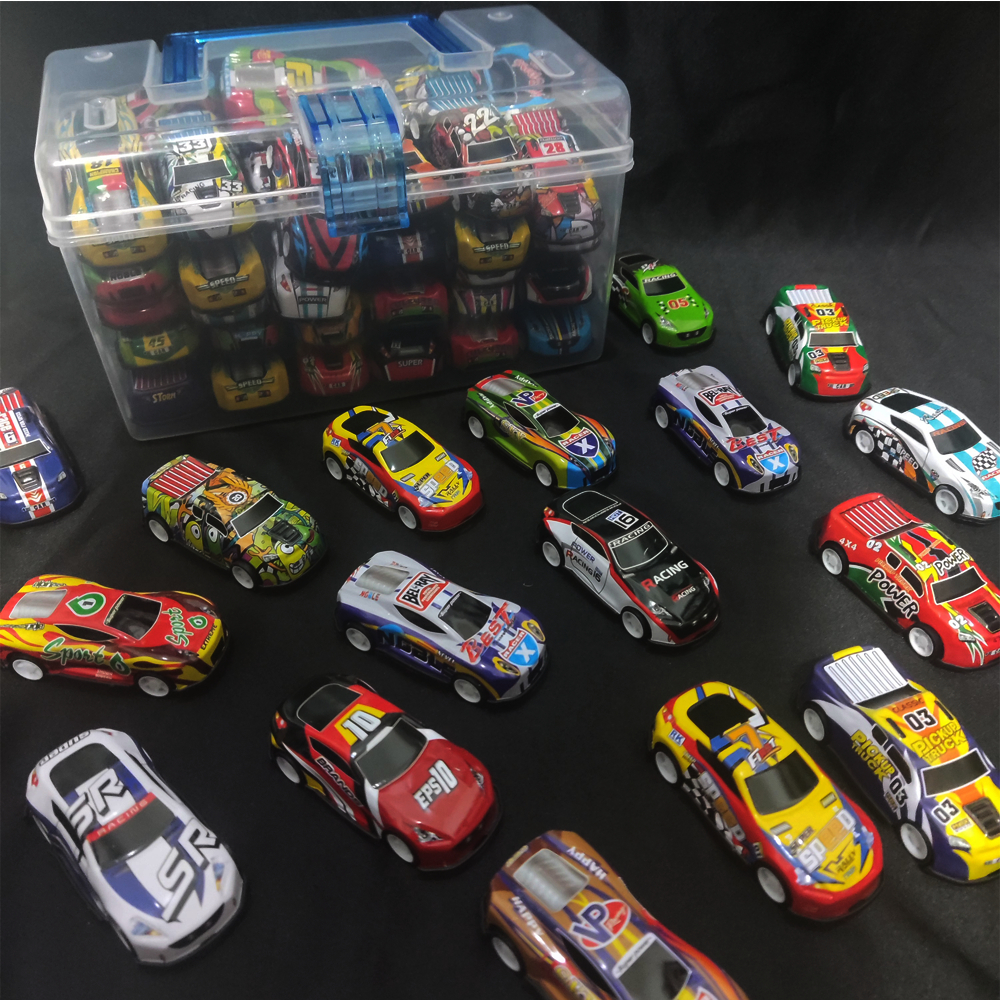(45 Pcs + Box Container) Mainan mobil mobilan anak bahan besi alloy pullback / mainan edukasi anak / mainan