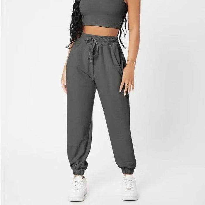 Celana Jogger Sweatpants Highwaist Look Korean Style Unisex Joger Panjang Pria Dan Wanita Basic Polos Jumbo Training Tre