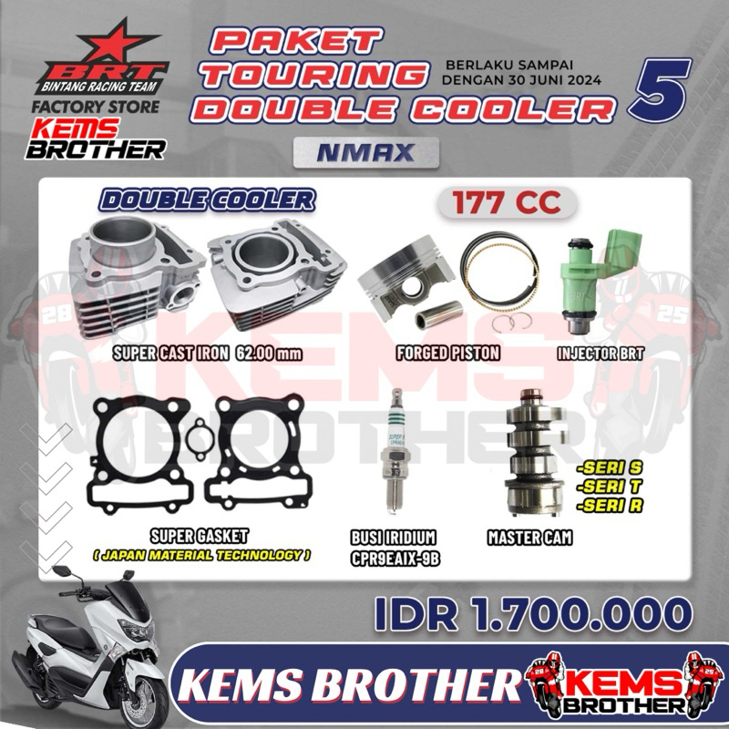 Blok Bore Up 177 CC Double Cooler BRT - Paket Touring 5 - NMAX, Aerox, Lexy - Original BRT Blok, Piston, Injektor, Nokenas, Busi
