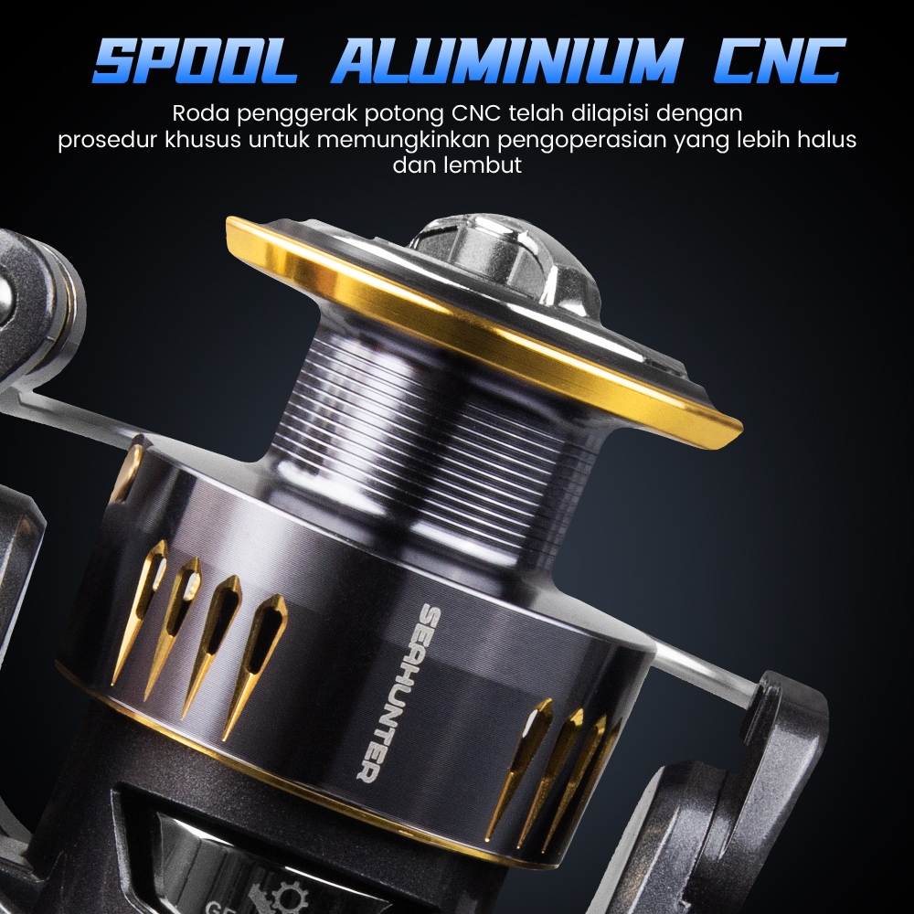 OFFICIALSEAHUNTER TURBO PRO Reel Pancing Power Handle Spinning Reel, One-Way Gulungan Reel Pancing, 15KG Max Drag, Saltwater, CNC Aluminum Spool, 5+1B