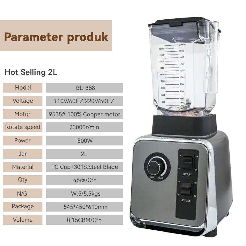 High Speed Silent Blender Multi-Fungsi Baru 1500W 2L Classic Mechanical Smoothie Maker Blender Multifunctional Ice Blend