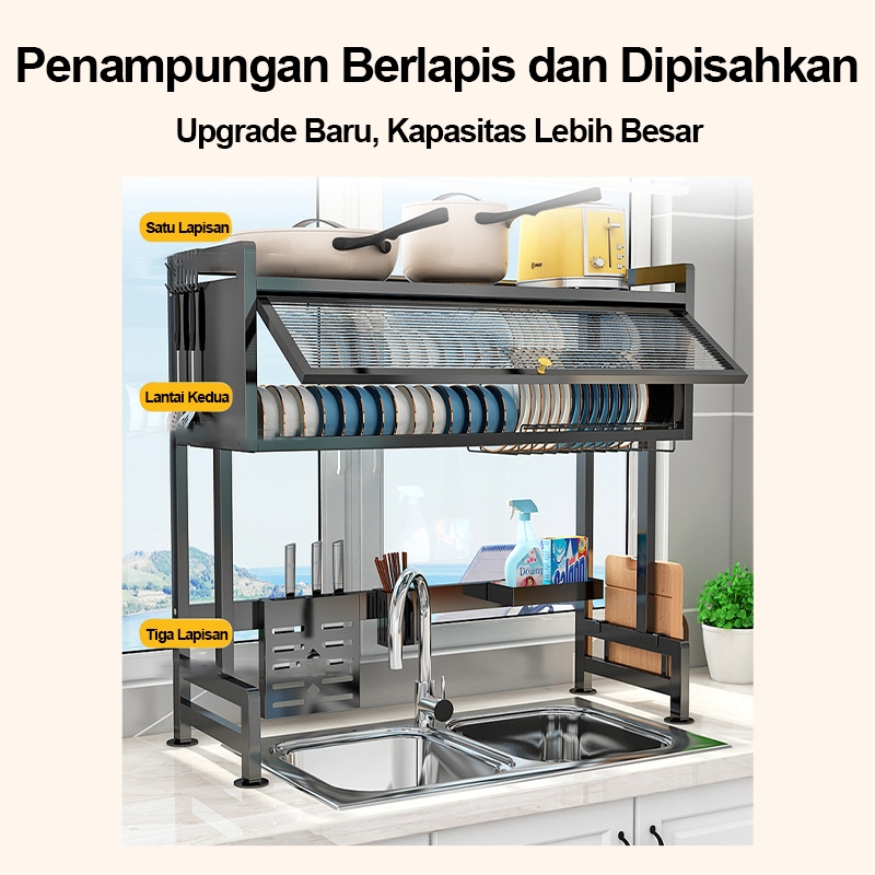 Rak Piring Tertutup Rak Piring Wastafel With Cover Stainless Steel Rak Dapur Rak Piring Gantung Cuci Piring Wastafe