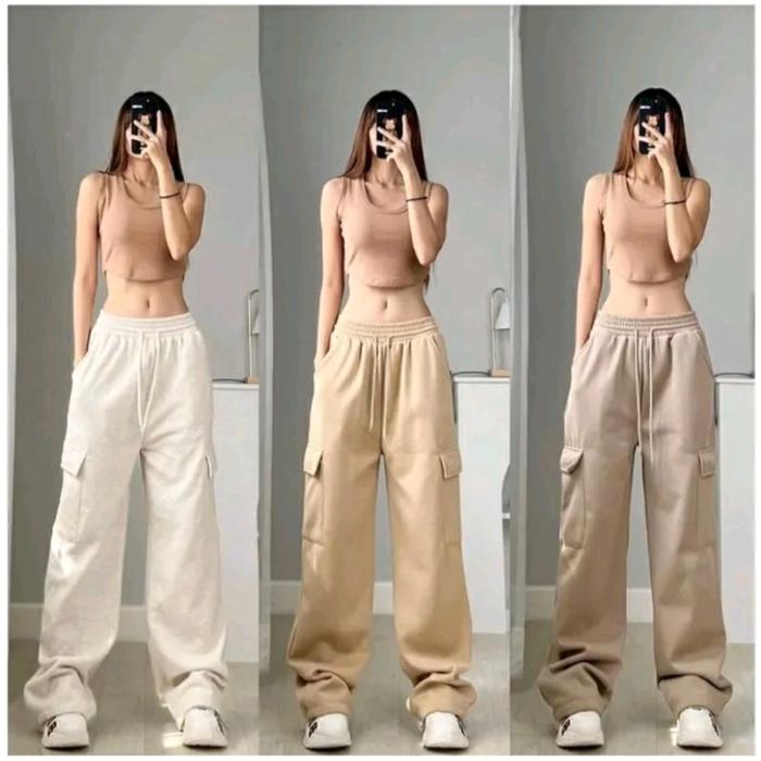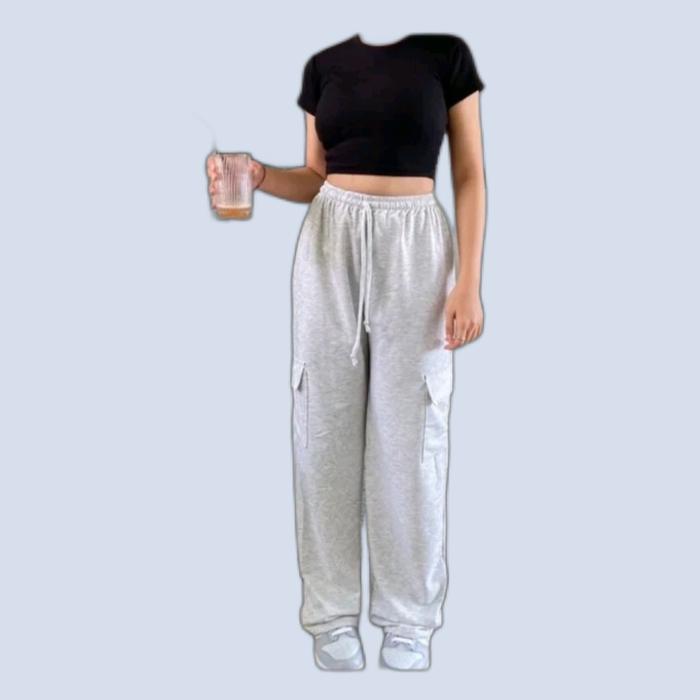 Celana Jogger Jooy Sweetpants Celana Cargo Panjang Wanita - Hitam, Jumbo