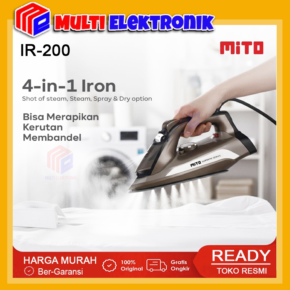 Mito Iron200 Setrika Uap Dan Kering Ir-200 Fungsi 4In1 | Setrika Listrik | Mode Uap, Kering, Semburan Uap, Semprotan Air