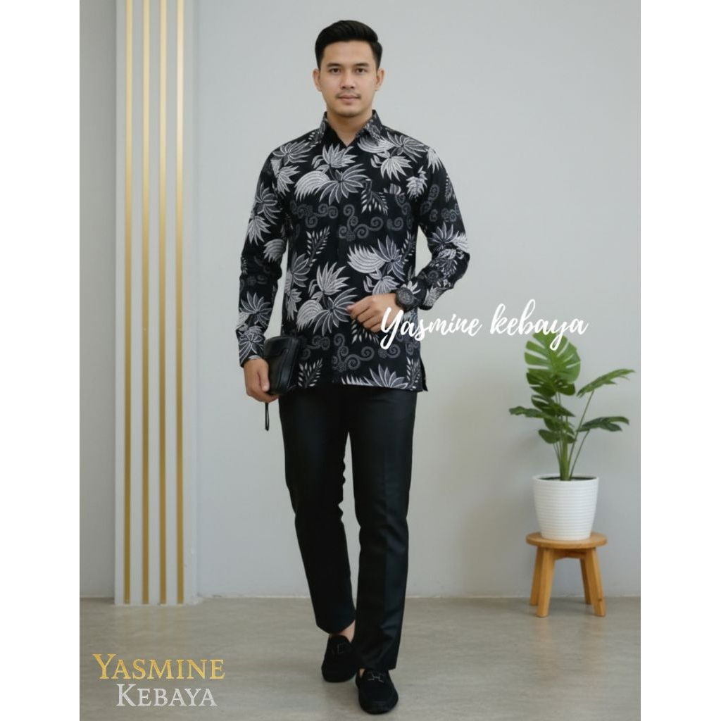 BEST SELLER Couple Batik Keluarga Aurora Selendang Silver | Set Kebaya Modern & Kemeja Motif Kelapa Silver | Batik Sarimbit Terbaru
