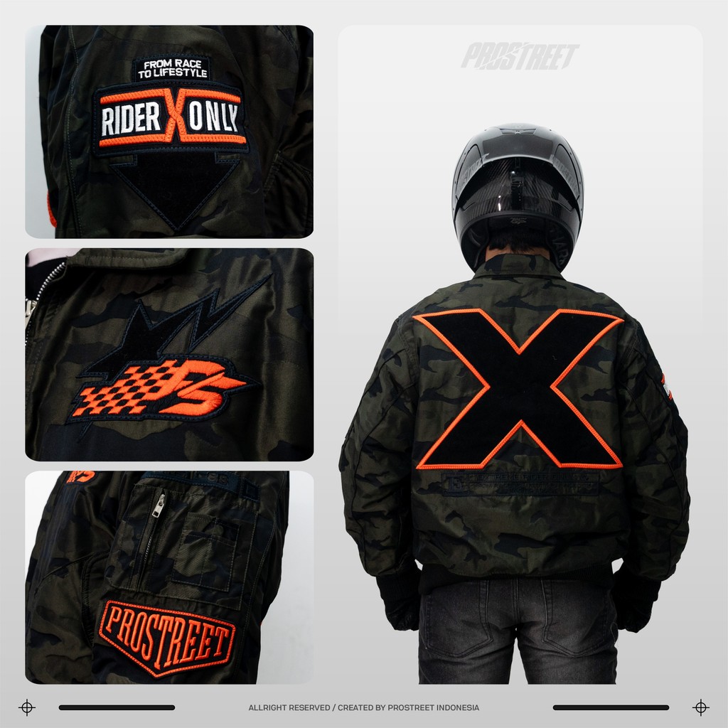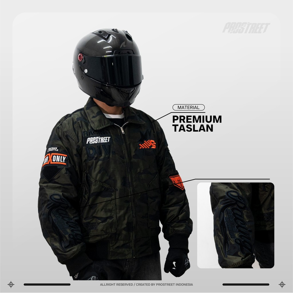 Jaket Boxy Bomber Prostreet Taslan Camo Green