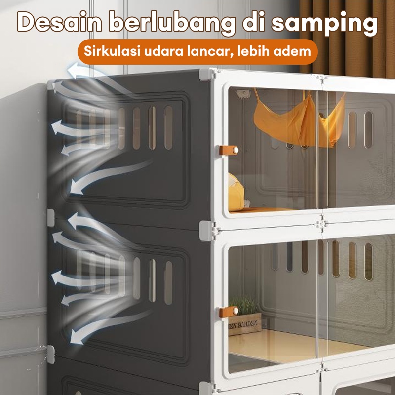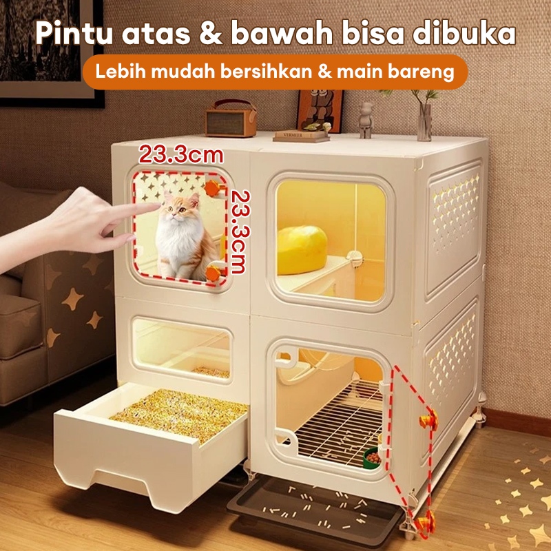 Kandang Kucing Jumbo Alumunium Modular 3 2 Tingkat Pintu Kaca Ganda Besar Lipat XXXL XXL Murah Free Kotak Pasir Garansi