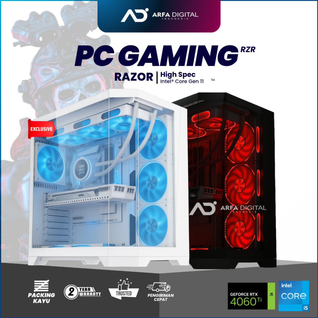PC Gaming Editing Rendering Fullset Murah intel Core i5 11400F Ram 32GB SSD NVME 512GB VGA CARD 12GB Monitor 24 inch RAZOR